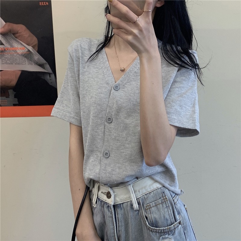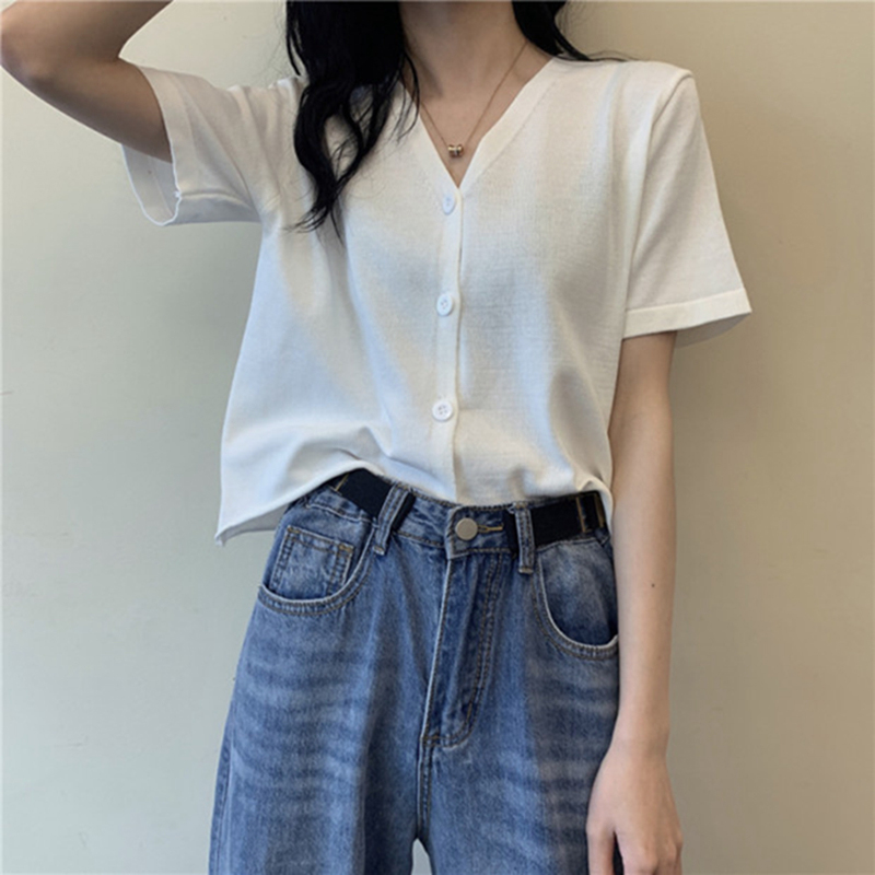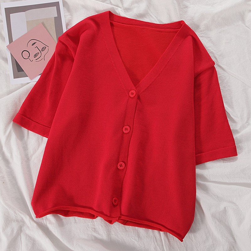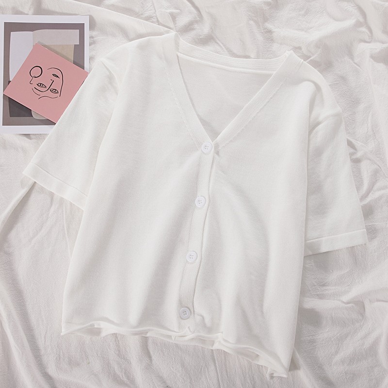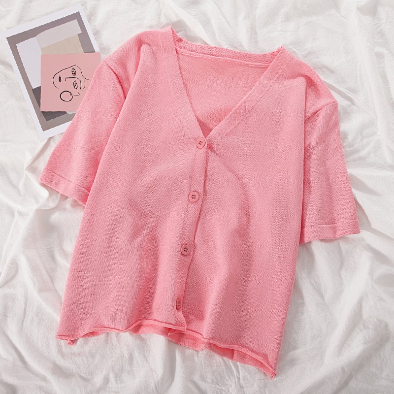 半小時前氣質v領薄款打底針織衫,2020夏季新款女裝短款開衫上衣 - 【買一送二】任選3件,僅需NT$1098