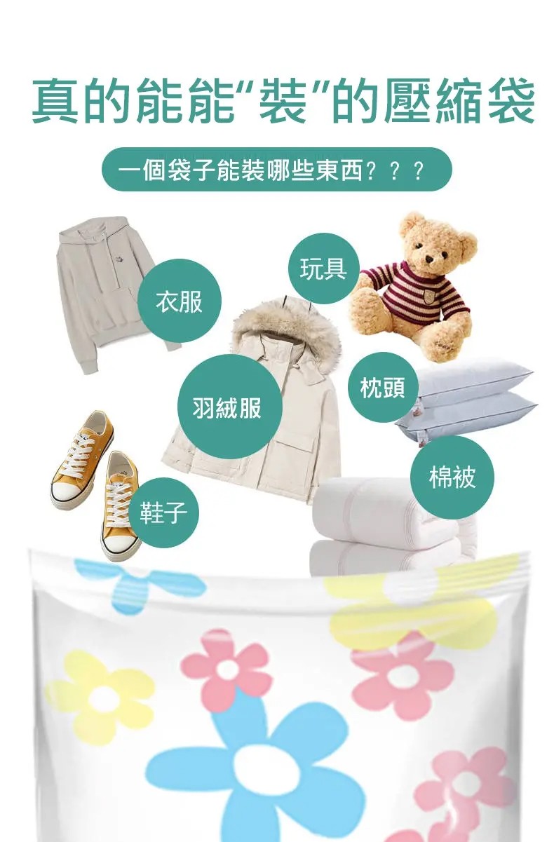 15分鐘前掛式真空壓縮袋推薦,輕鬆節省衣櫃空間 - 【買5送5】尺寸任選★贈電動抽氣機★ NT$1299