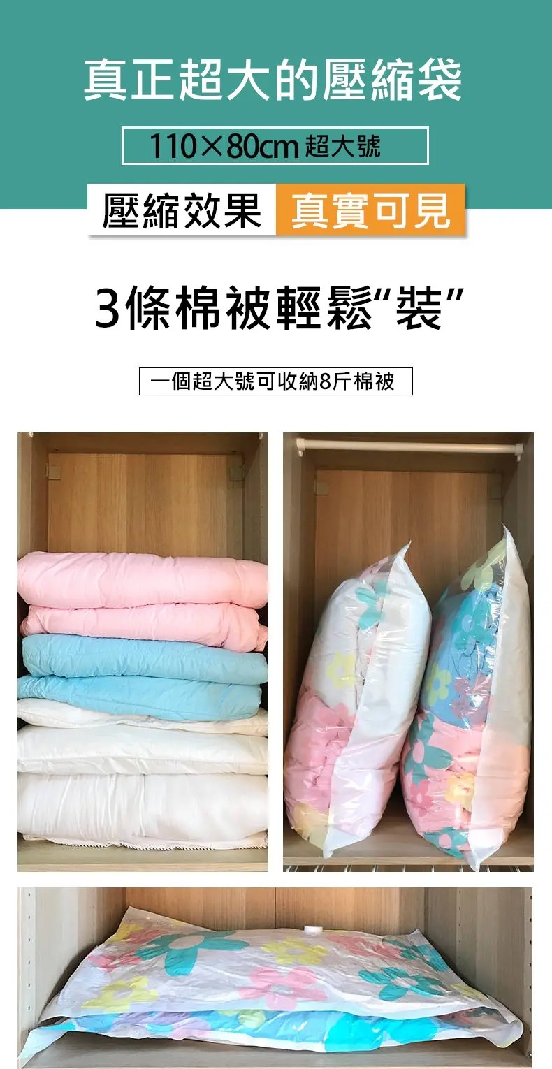 7分鐘前掛式真空壓縮袋推薦,輕鬆節省衣櫃空間 - 【買3送3】尺寸任選★贈電動抽氣機★ NT$999