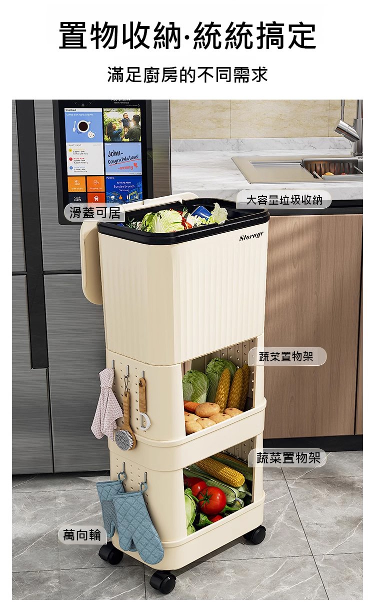 11分鐘前【不彎腰】家用可移動多功能置物垃圾桶 - 【超殺*贈20垃圾袋】1入組$279
