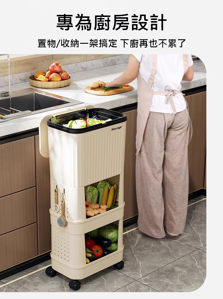 12分鐘前【不彎腰】家用可移動多功能置物垃圾桶 - 【超殺*贈20垃圾袋】1入組$279